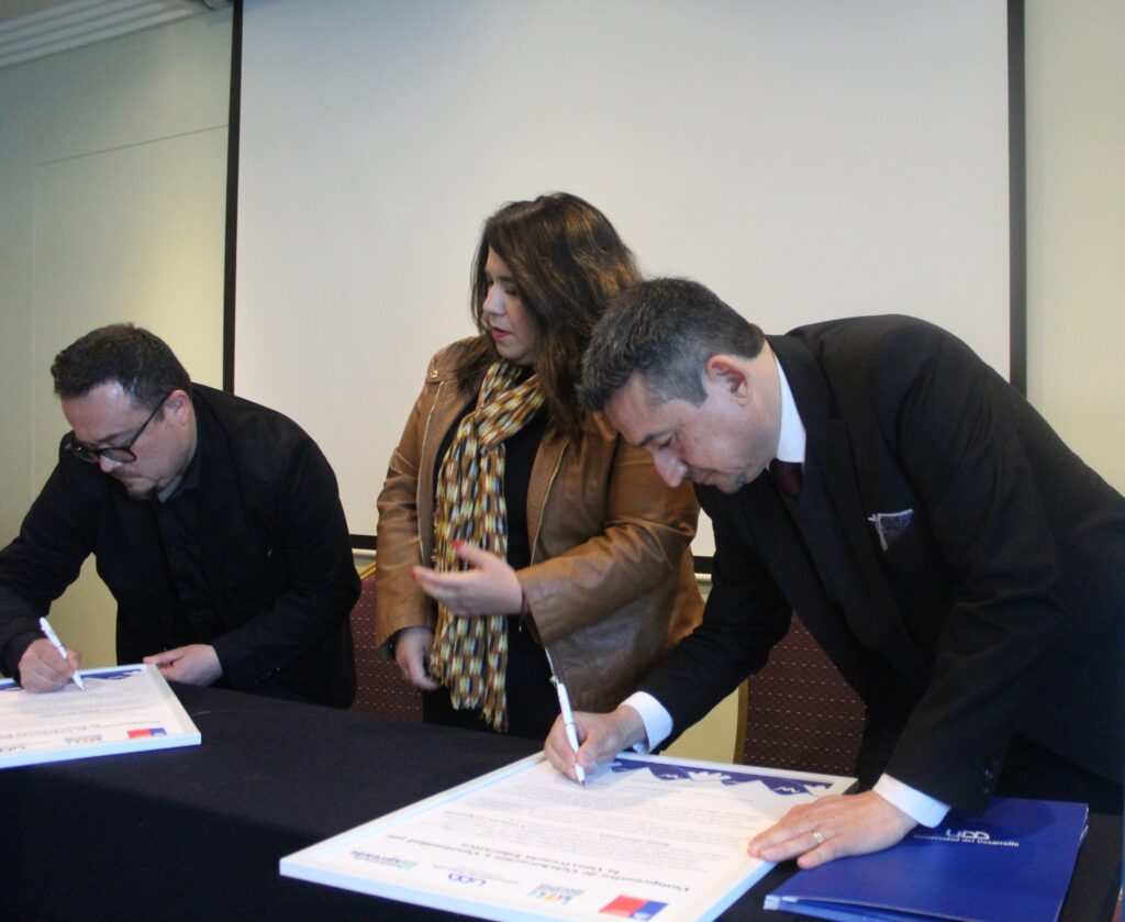 El compromiso a dar continuidad al trabajo desarrollado en el marco del programa “A Convivir se Aprende” asumieron los directores ejecutivos de los SLEP Valle Diguillín y Punilla Cordillera, junto a la Seremi de Educación.