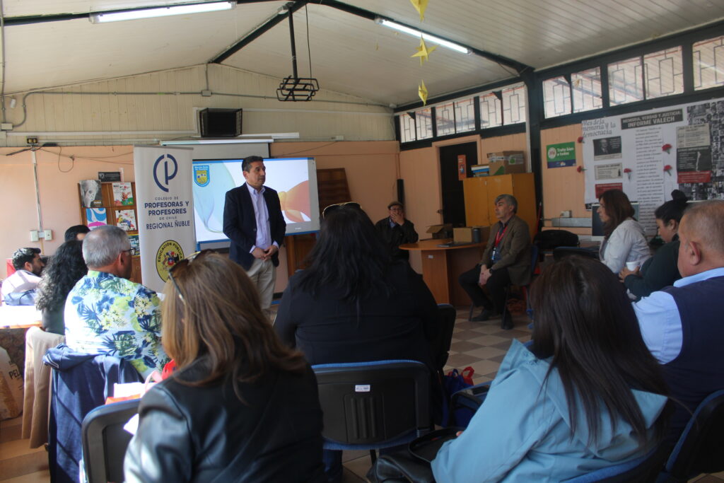 Una exposición sobre el avance del diagnóstico de infraestructura y del presupuesto del SLEP para 2026 realizaron los equipos del SLEP Valle Diguillín a los dirigentes comunales del Colegio de Profesores en una reunión ampliada de la directiva regional.